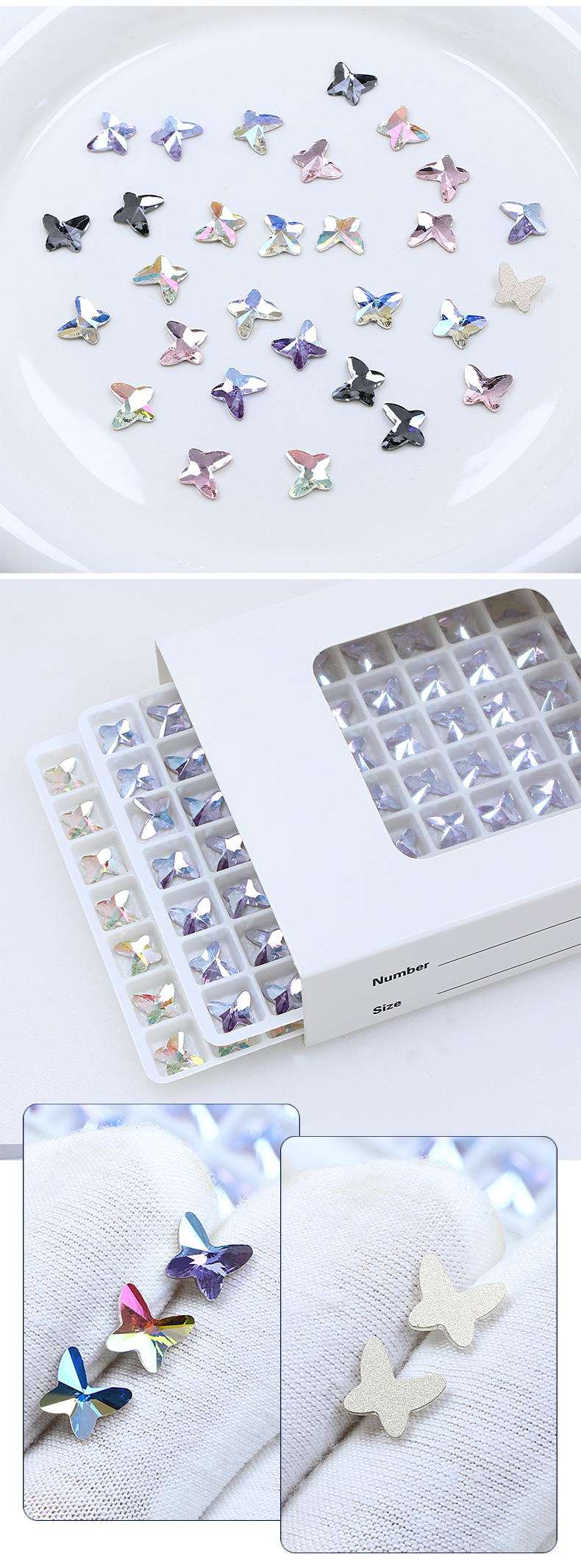 DZ 2140 8*7mm butterfly shape glass flatback stone for nail art