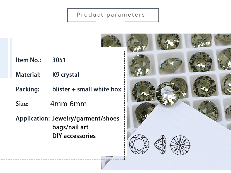 DZ 3051 4mm 6mm round shape crystal fancy stone k9 crystal rhinestone for nail art