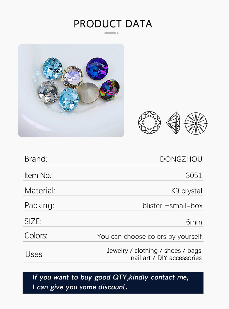 DZ 3051 6mm round shape crystal fancy stone k9 crystal rhinestone for nail art