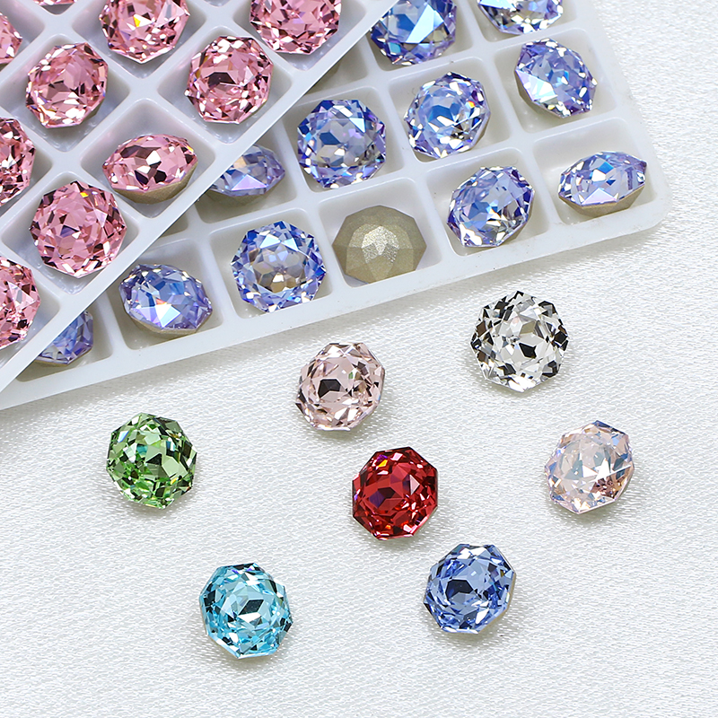 DZ 3289 8*8mm rose cut octagon shape effect color crystal fancy stone for nail art