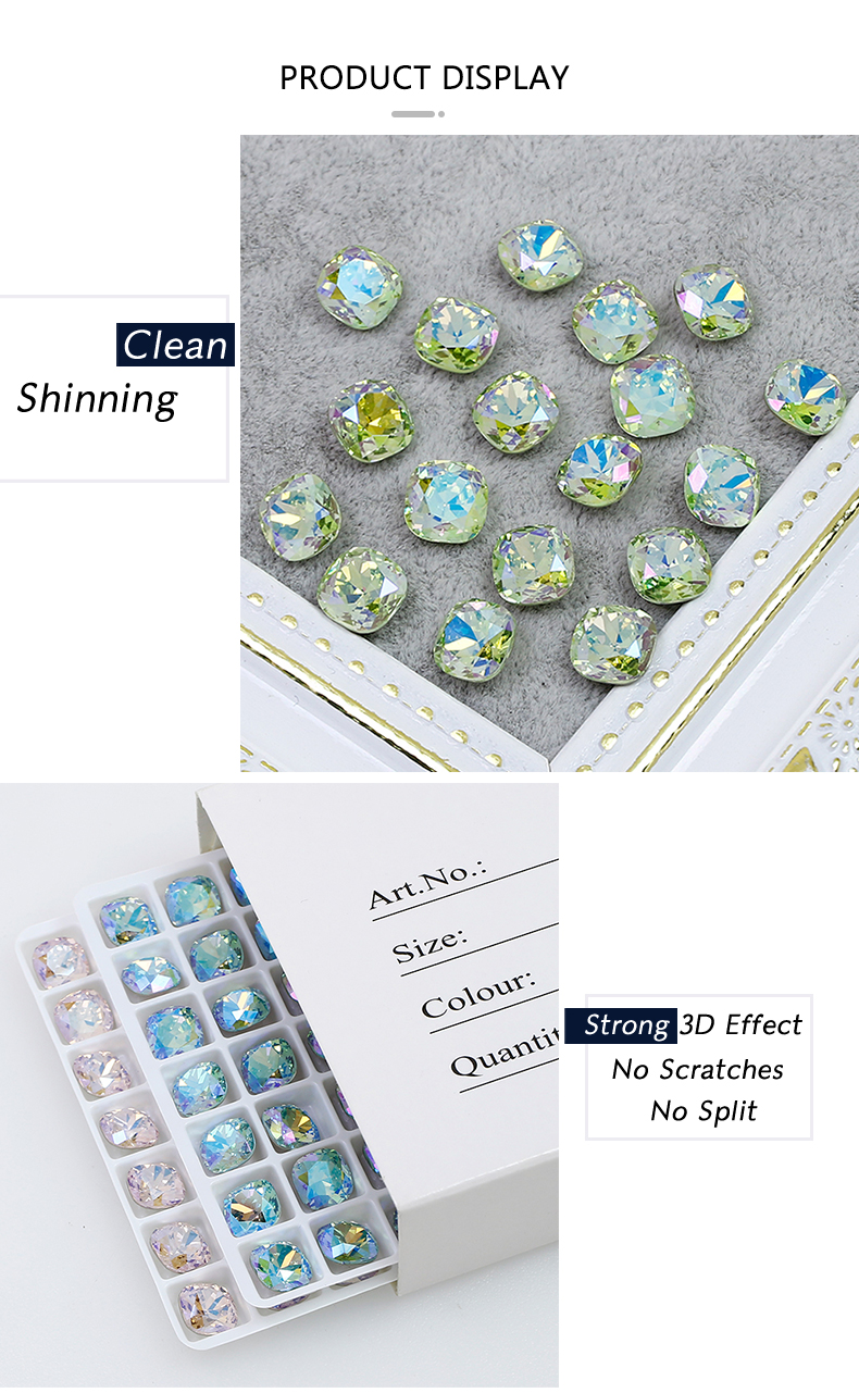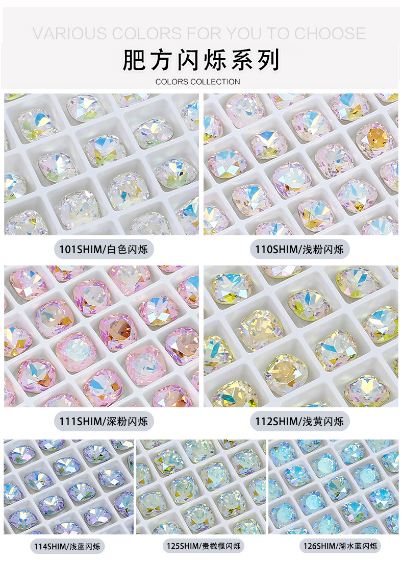 DZ 3010 6*6mm fat square shape effect color crystal fancy stone for nail art