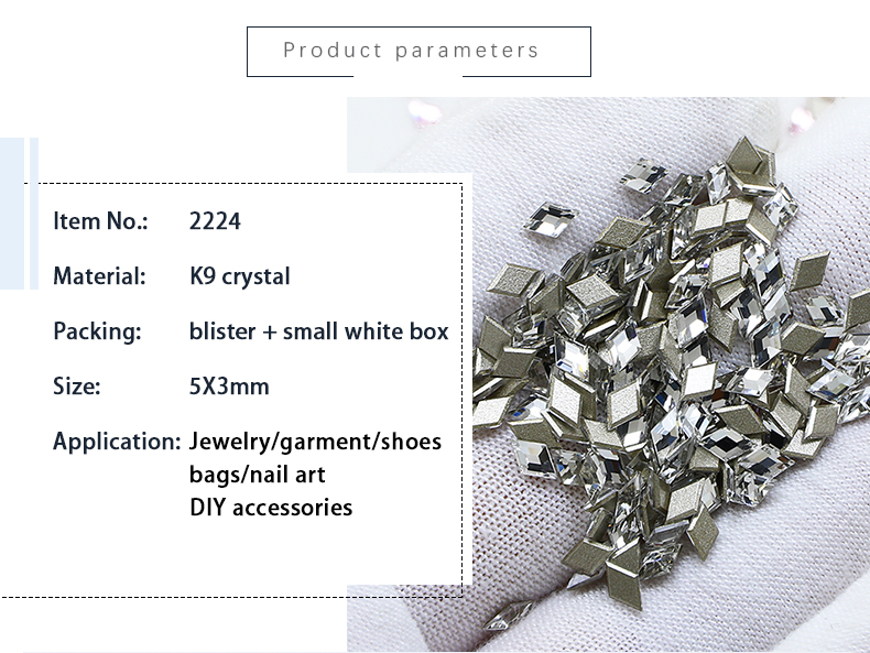 DZ 2224 5*3mm rhombus shape glass flatback stone for nail art (1440pcs/pack)