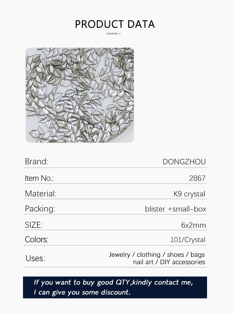 DZ 2867 6*2mm boat shape glass flatback stone for nail art (1440pcs/pack)