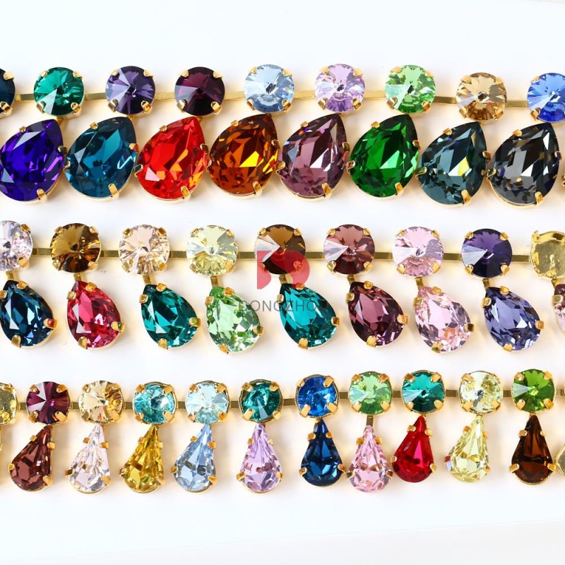 Drop and round rhinestones cup chains