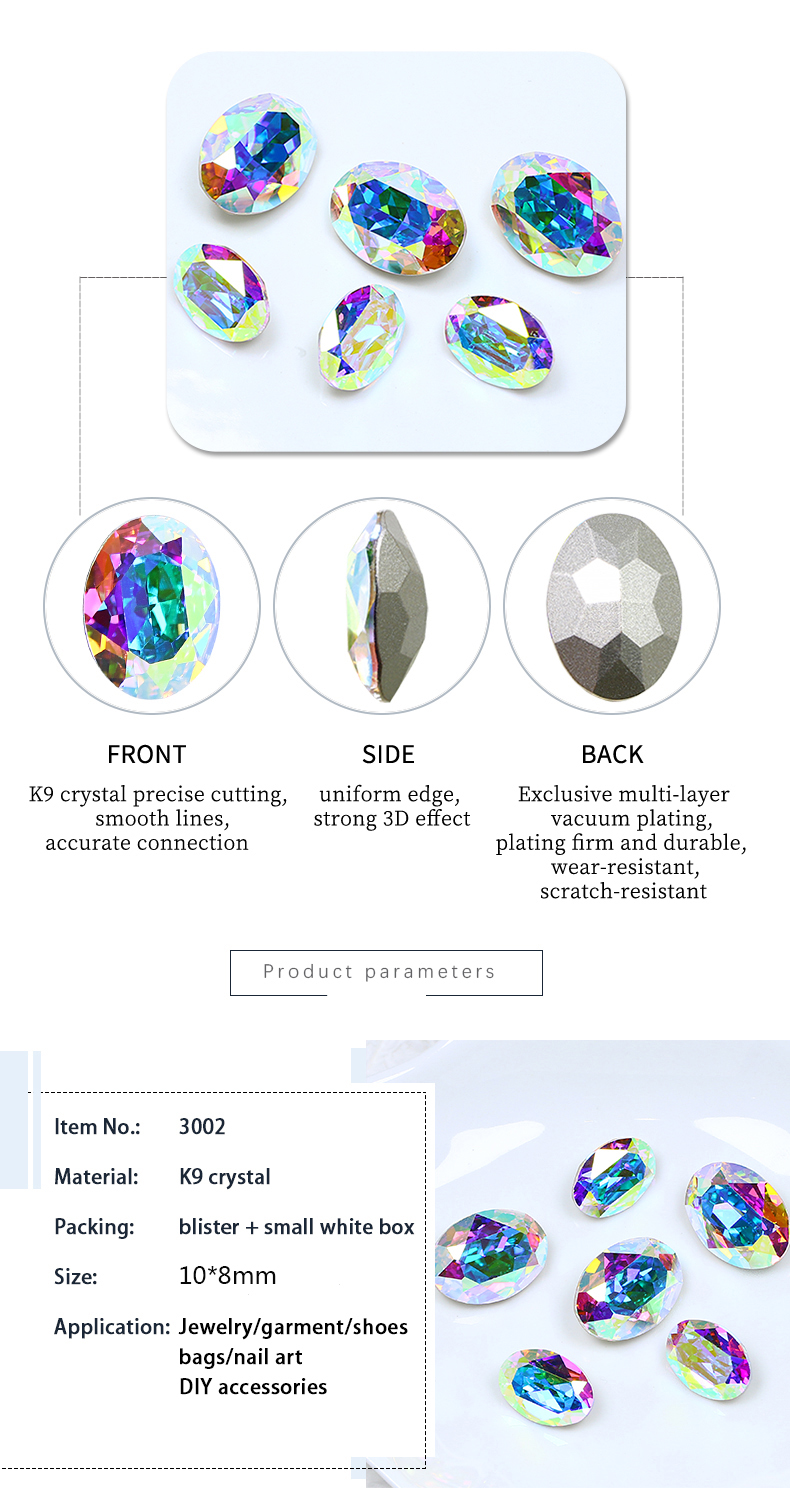 DZ 3002 10*8mm oval shape crystal fancy stone for nail art