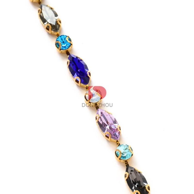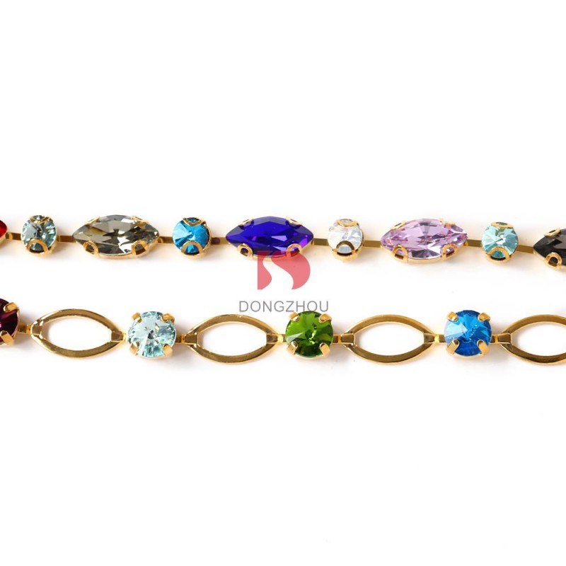 Round and navette rhinestones cup chains
