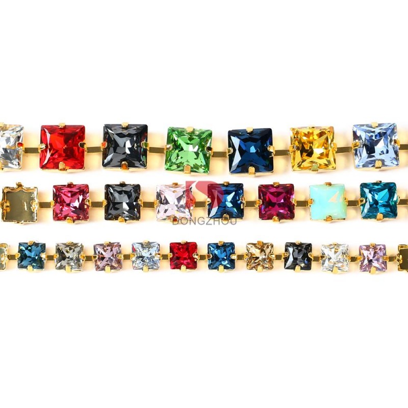 square rhinestones cup chains