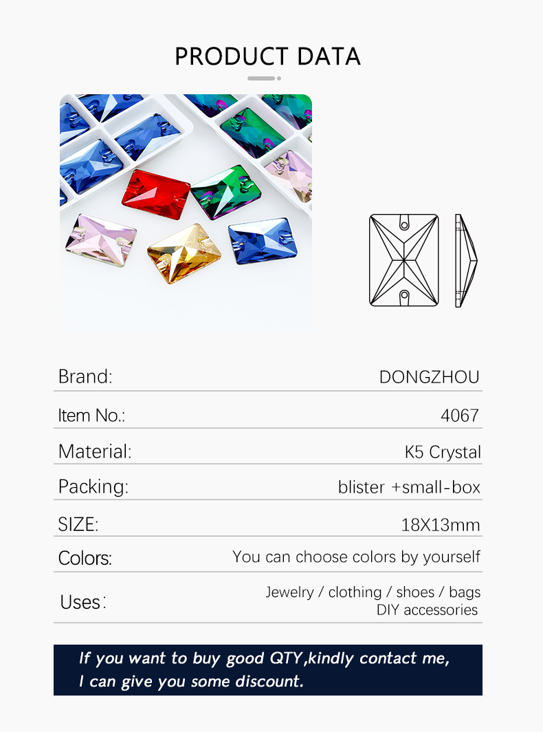 DZ 4067 25*18 MM rectangle shape crystal sew on stone
