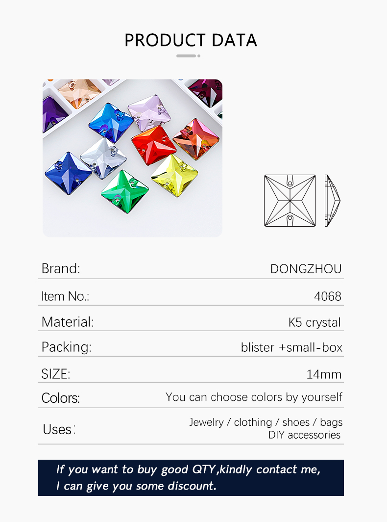 DZ 4068 14mm crystal sew on rhinestone square shape