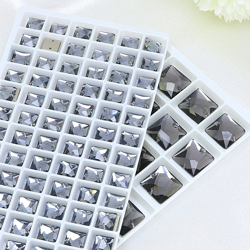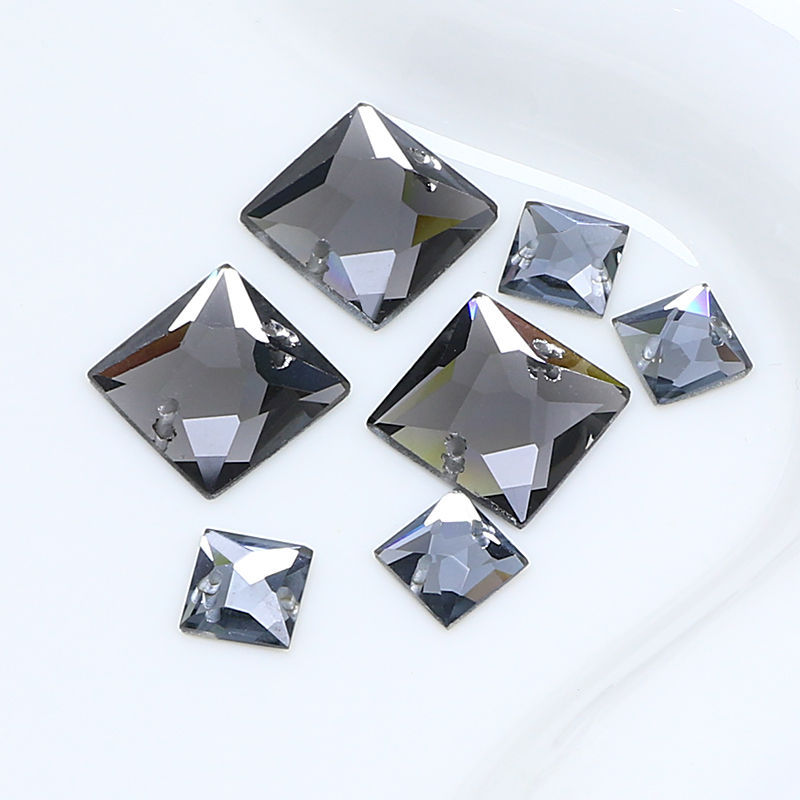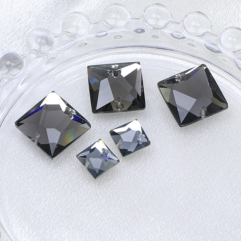 DZ 1072 with 2 hole square shape crystal flat back stone