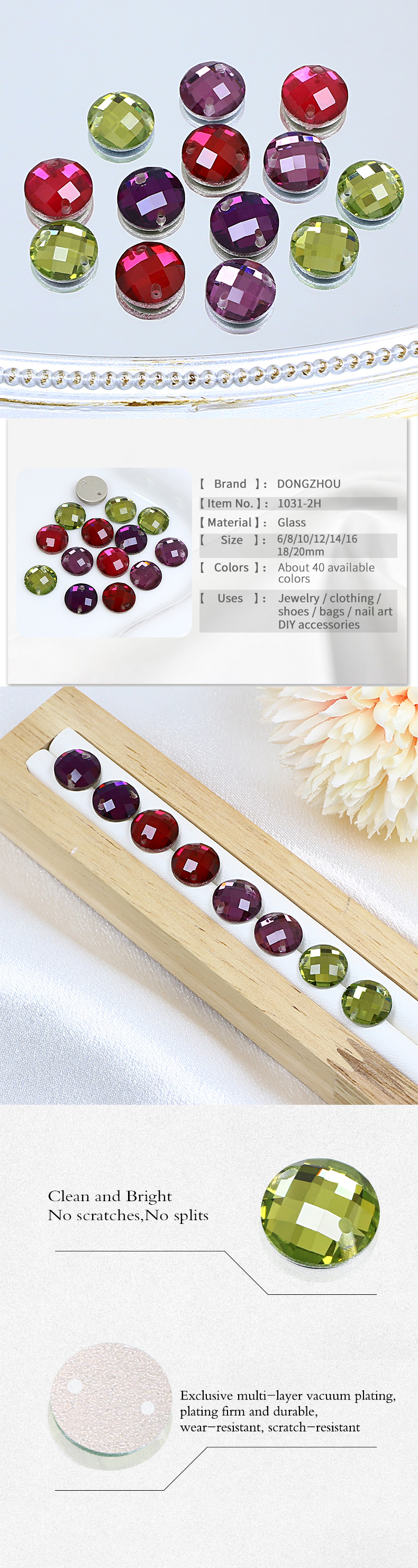 DZ 1031 round shape with 2 hole flatback stones glass stone
