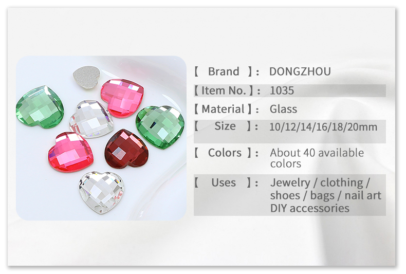 DZ-1035 flat back heart crystal fancy stones for jewelry making