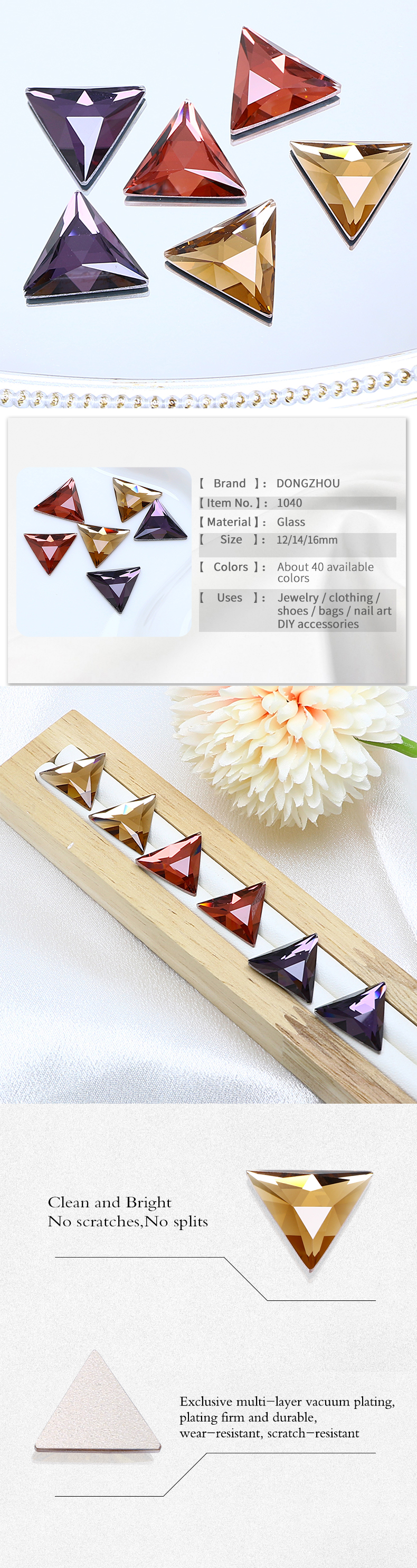 DZ 1040 Triangle Glass Stone Flatback Stone Mirror Stones